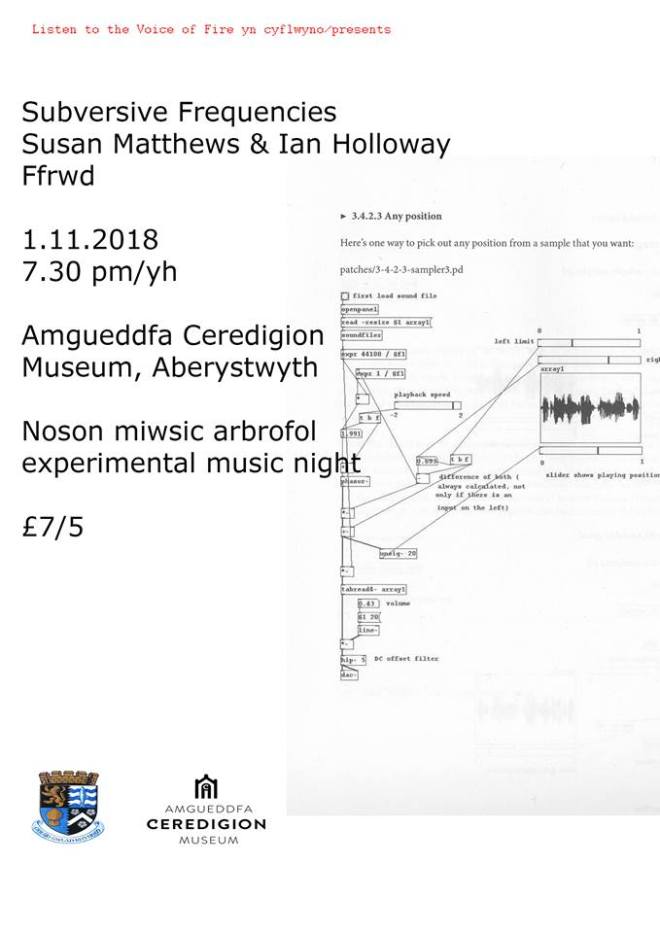 Live: Listen To The Voice Of Fire, 1 November, 2018 Posted on October 29, 2018October 29, 2018 by sirenwirerecordings Susan will be performing live with Ian Holloway for Listen To The Voice Of Fire, 1st November 2018 Amgueddfa Ceredigion Museum, Aberystwyth Tickets £7/£5 Doors open: 7.30pm Like Loading... Related