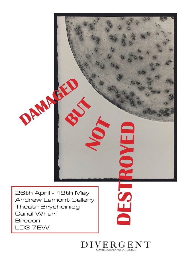 ‘Damaged But Not Destroyed’ runs from 26th April – 19th May, 2019 at the Andrew Lamont Gallery, Theatre Brycheiniog (Brecon Theatre), Wales.
