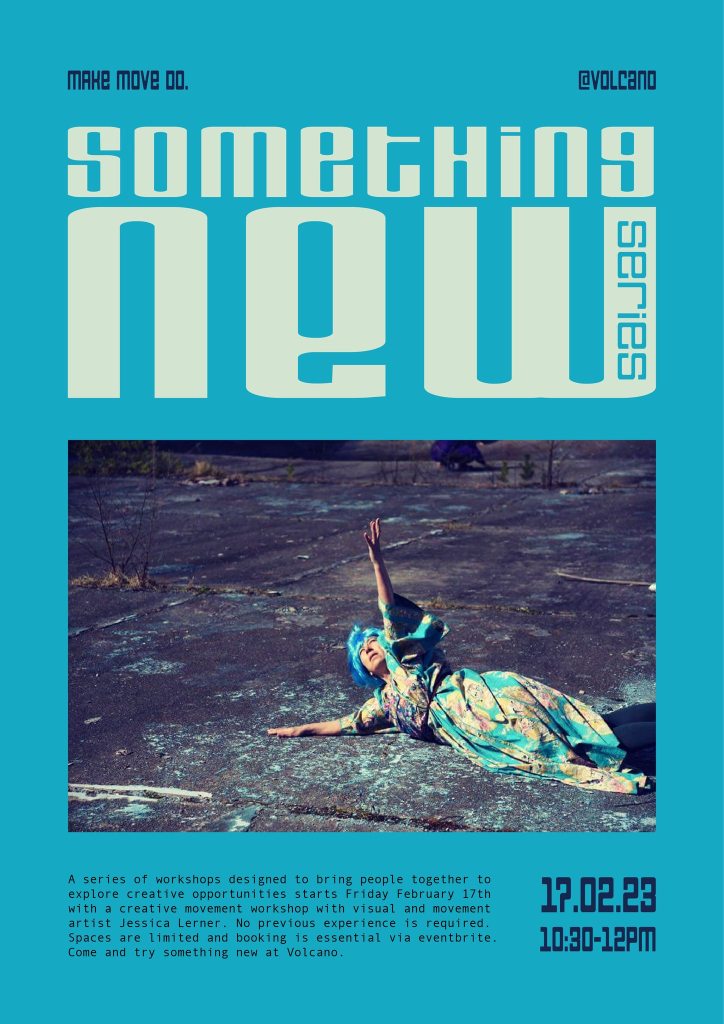 Make Move Do | Something New Series is a series of workshops designed to bring people together to explore creative opportunities starts Friday February 17th with a creative movement workshop with visual and movement artist Jessica Lerner. No previous experience is required. Spaces are limited and booking is essential via eventbrite. Come and try something new at Volcano.