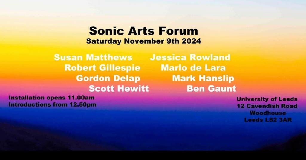 Susan will be presenting her ongoing Scar Music project as part of the upcoming Sonic Arts Forum at Leeds University on 9th November.