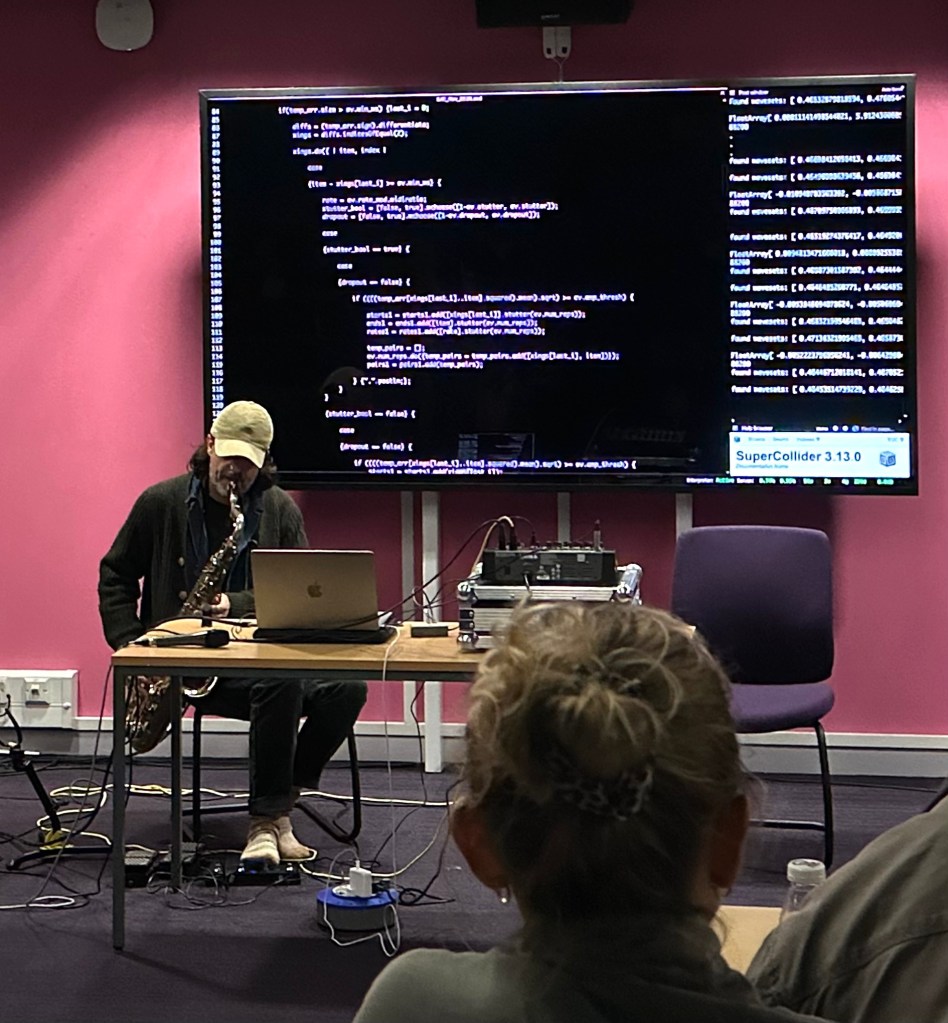 Mark’s core practice consists of improvised saxophone and data-driven electronics.He is currently using Trevor Wishart’s concept of ‘Wavesets’ – a method for identifying then processing short fragments of audio (which originally was only available as a non-real time process) – to process live audio audio signals, achieving unique and unexpected effects in real-time improvised performance.
